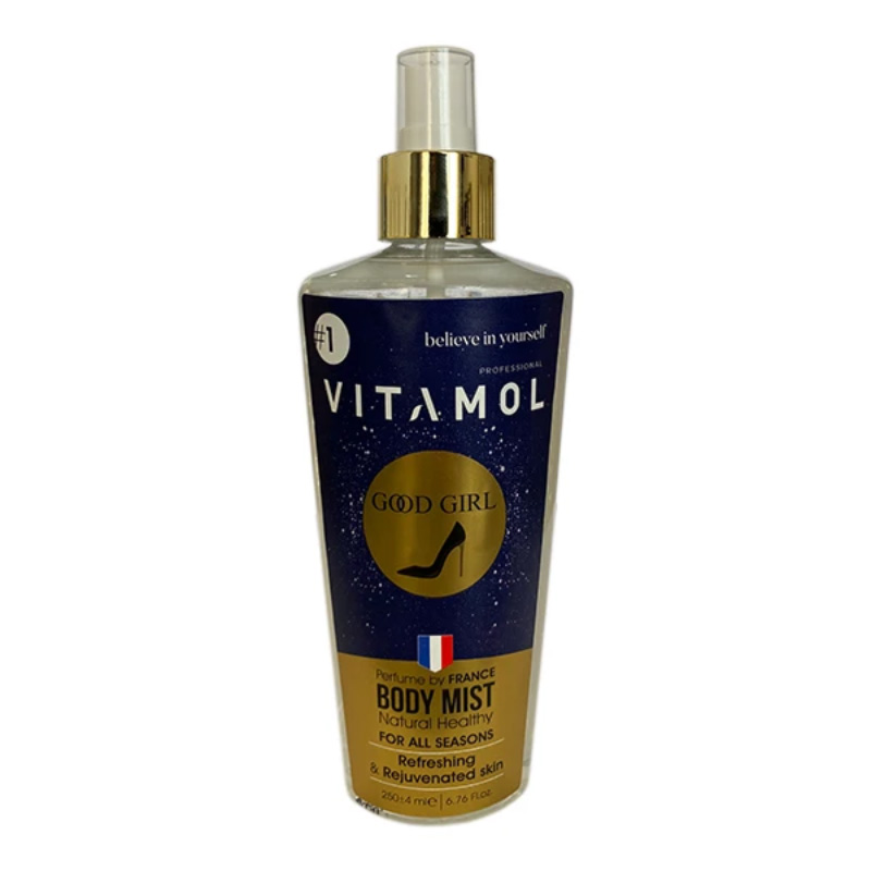 بادی اسپلش زنانه ویتامول مدل گودگرل محصولی با رایحه گرم، تند و شیرین و ساختار رایحه گلی بوده که با دارا بودن روغن های گیاهی، ضمن جلوگیری از تعریق، موجب خوشبو و شفاف شدن پوست بدن خواهد شد. این محصول آبرسان است و پوست بدن را نرم و شفاف می کند. در فرمولاسیون بادی اسپلش ویتامول، مواد حساسیت زا به کار نرفته است و ایجاد حساسیت نخواهد کرد. بوی سبک، عدم ایجاد حساسیت و سردرد، قیمت کمتر، حجم بیشتر، داشتن روغن های ضروری برای پوست و ماندگاری بالا از دیگر مشخصات این بادی اسپلش است. نت آغازی بادی اسپلش زنانه ویتامول مدل Good Girl قهوه و نت پایانی آن دانه تونکا است.