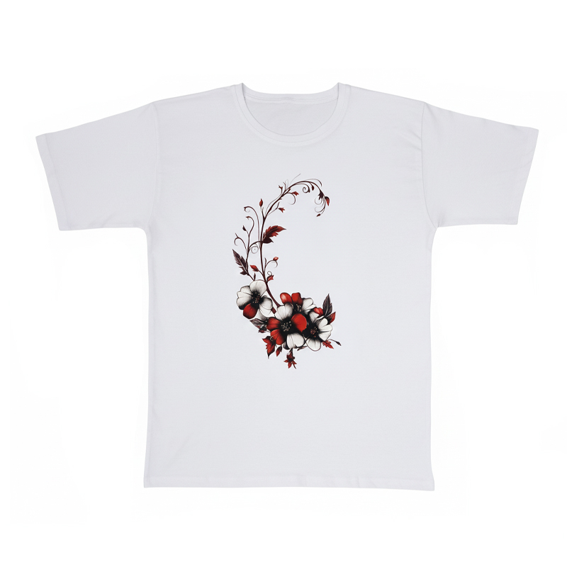 طرح گل بهکاررفته روی تیشرت، جلوهای لطیف و زنانه به آن بخشیده و بهراحتی با شلوار جین، اسلش یا دامن قابل ست شدن است.