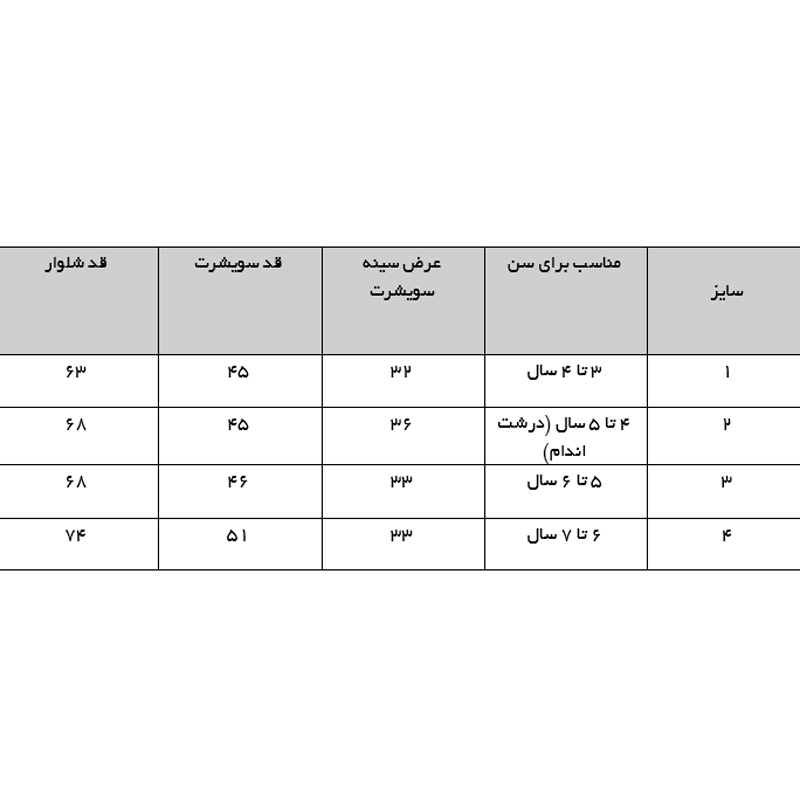 لظفا به دقت جدول سایزبندی را ببینید .