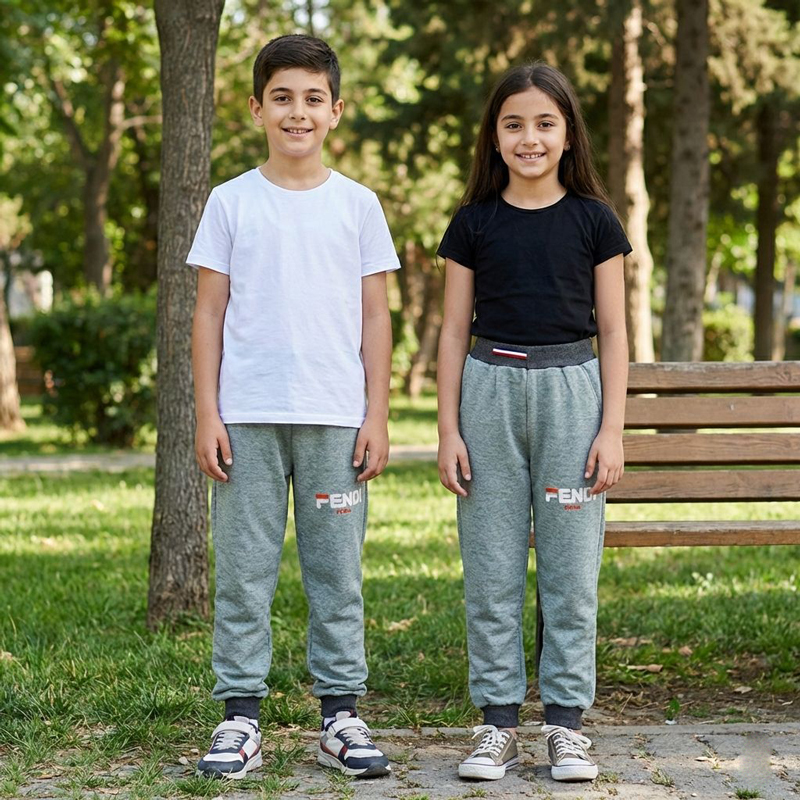 شلوار اسلش بچگانه ملانژ با طراحی اسپرت و راحت، مناسب استفاده روزمره، مهدکودک، مدرسه و بیرون.