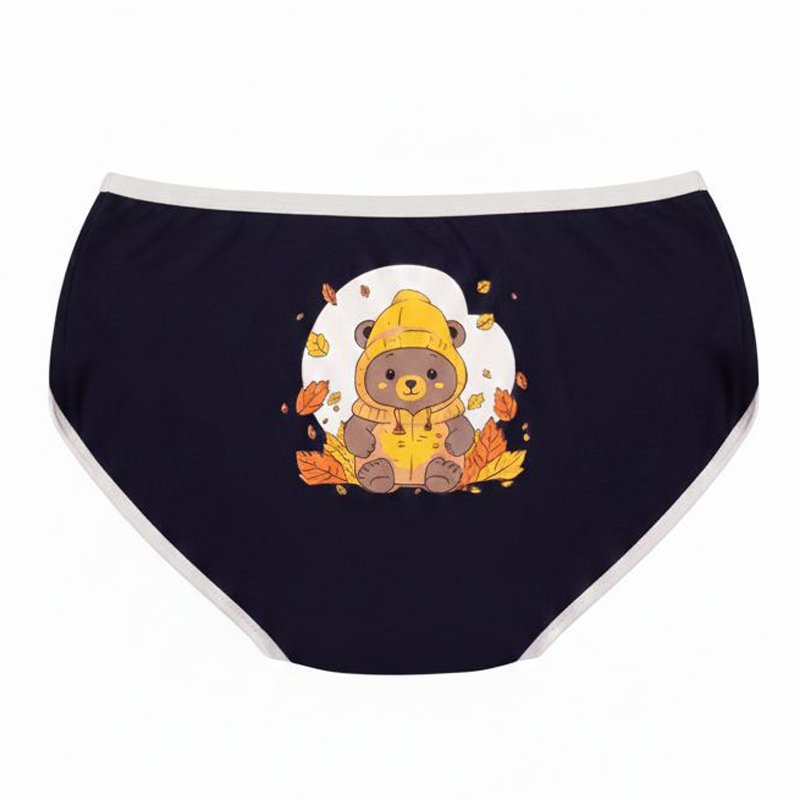 شورت زنانه نخ پنبه طرح خرس پاییزی (رنگ سرمه ای)