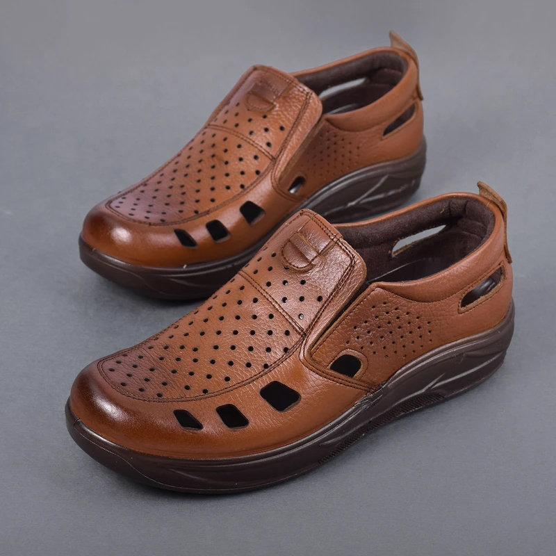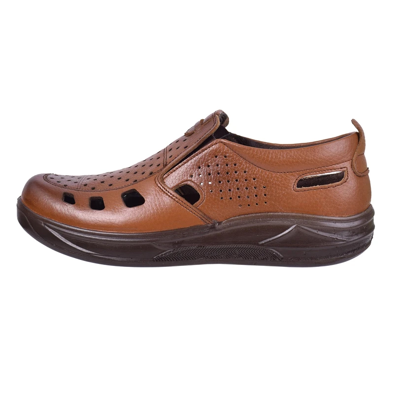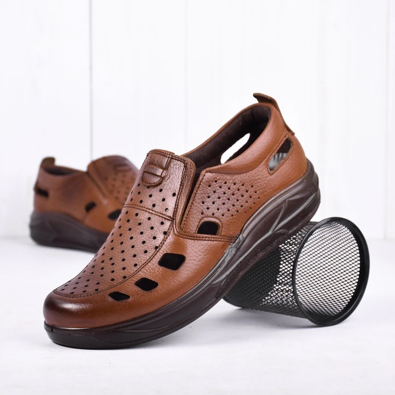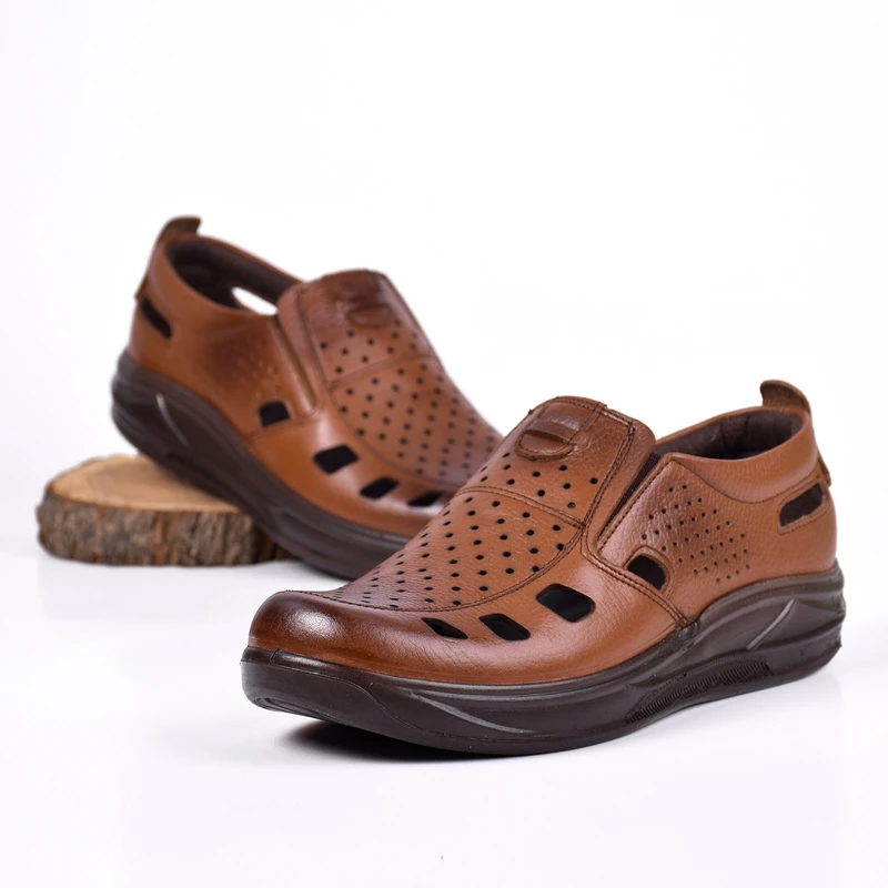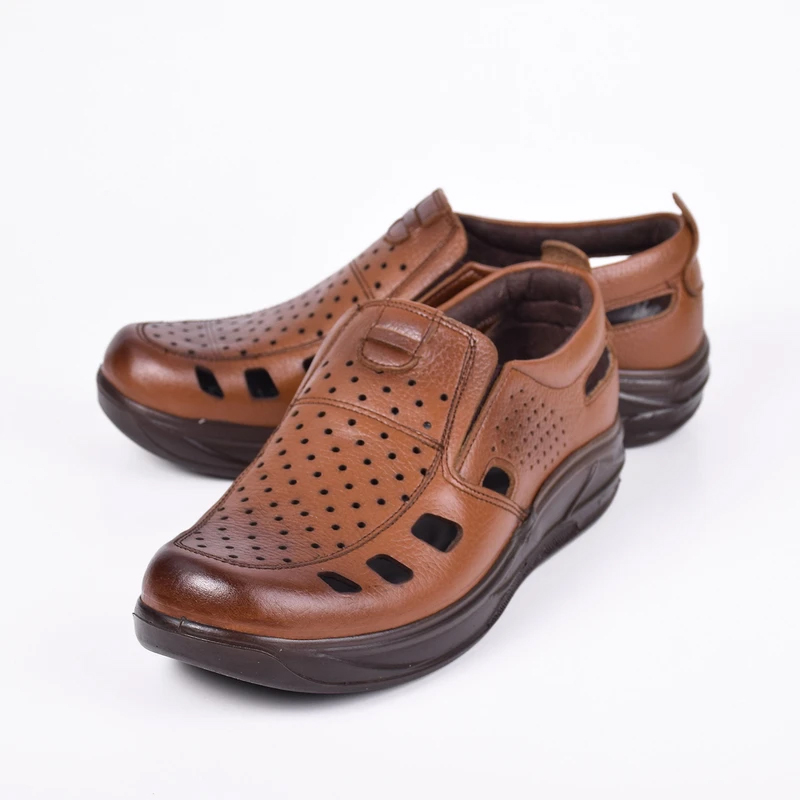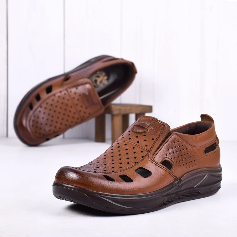 کفش مردانه تابستانی کشی مدل زنبوری رنگ عسلی دوخته شده از مرغوب ترین چرم توانسته علاوه بر زیبایی ، دوام فوق العاده ای نیز داشته باشد ، همچنین با توجه به بکارگیری کفی طبی و قالب سازی کاملا طبی ، راحتی بسیار زیادی را برای استفاده های طولانی در راه رفتن برای پای شما به همراه می آورد . این کفش با بهره گیری از رویه ، آستر و کفی چرم گاوی ، یکی از مدل های تمام چرم کفش مردانه است. در زیره ی این محصول از مواد پلی اورتان استفاده شده است که دارای مقاومت در برابر سایش و شکنندگی بوده و وزن بسیار سبکی نیز دارد. کفی چرم این محصول با بهره گیری از اسفنج پلی اورتان ، نهایت نرمی و راحتی را برای پا به همراه داشته و این محصول را به انتخابی طبی ، مقاوم ، سبک و مناسب برای تمام فصول سال تبدیل کرده است.